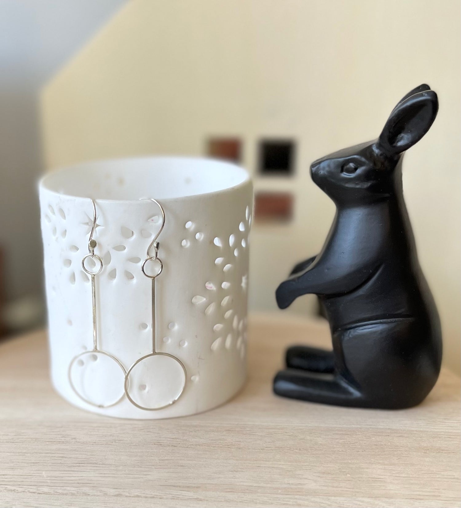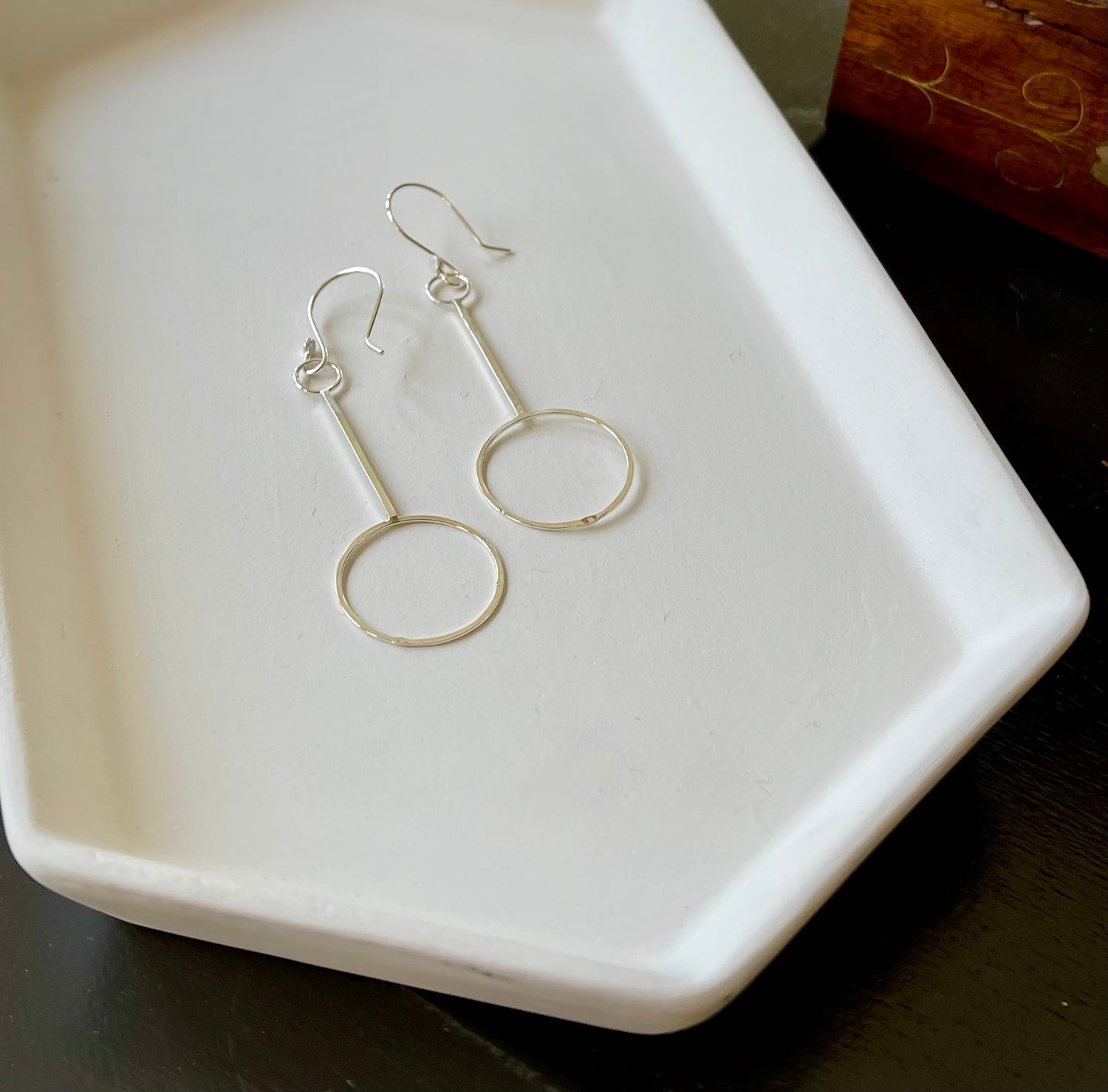 Large circles are 0.8 inches in diameter, and earrings measure 2.8 inches from top to bottom.