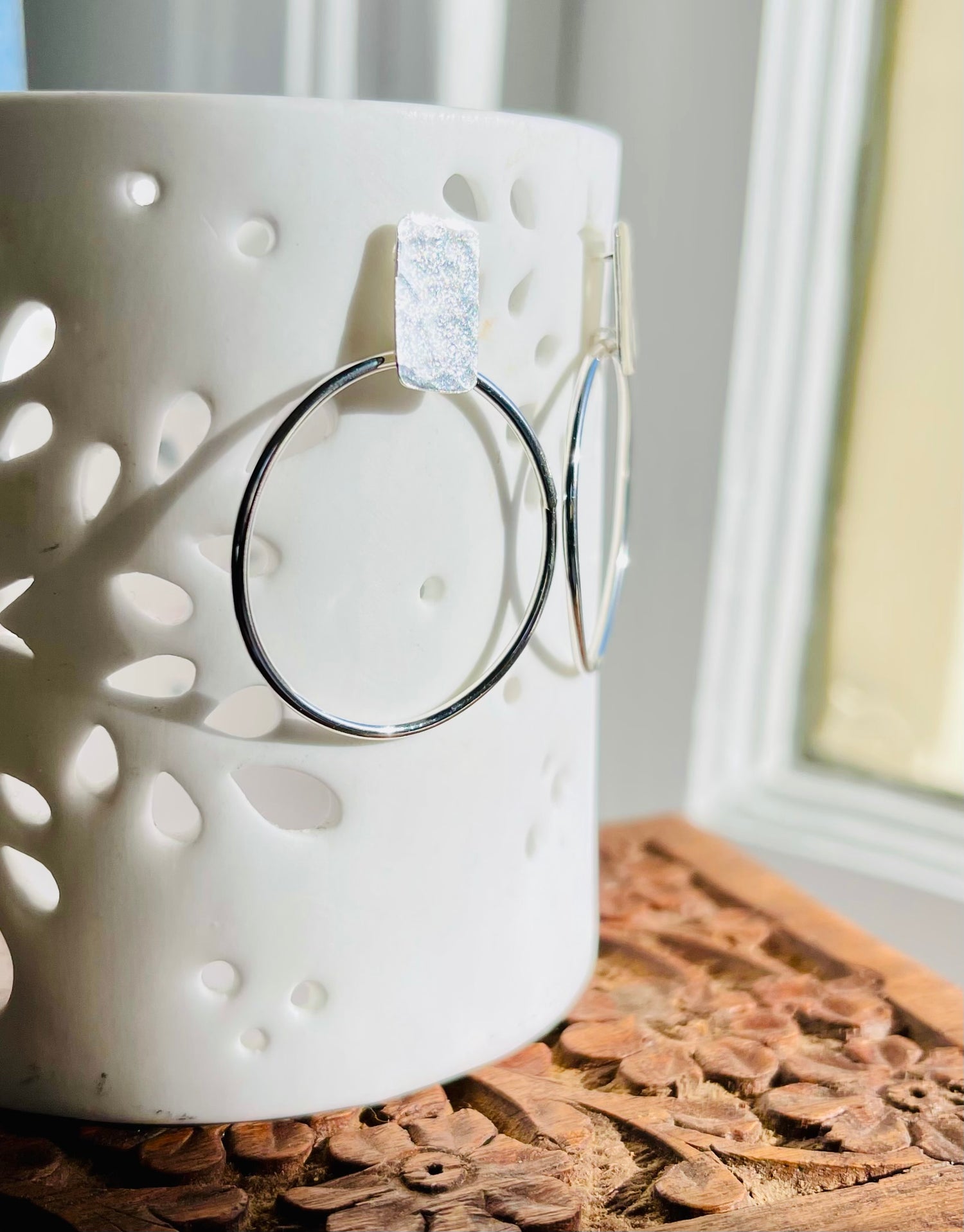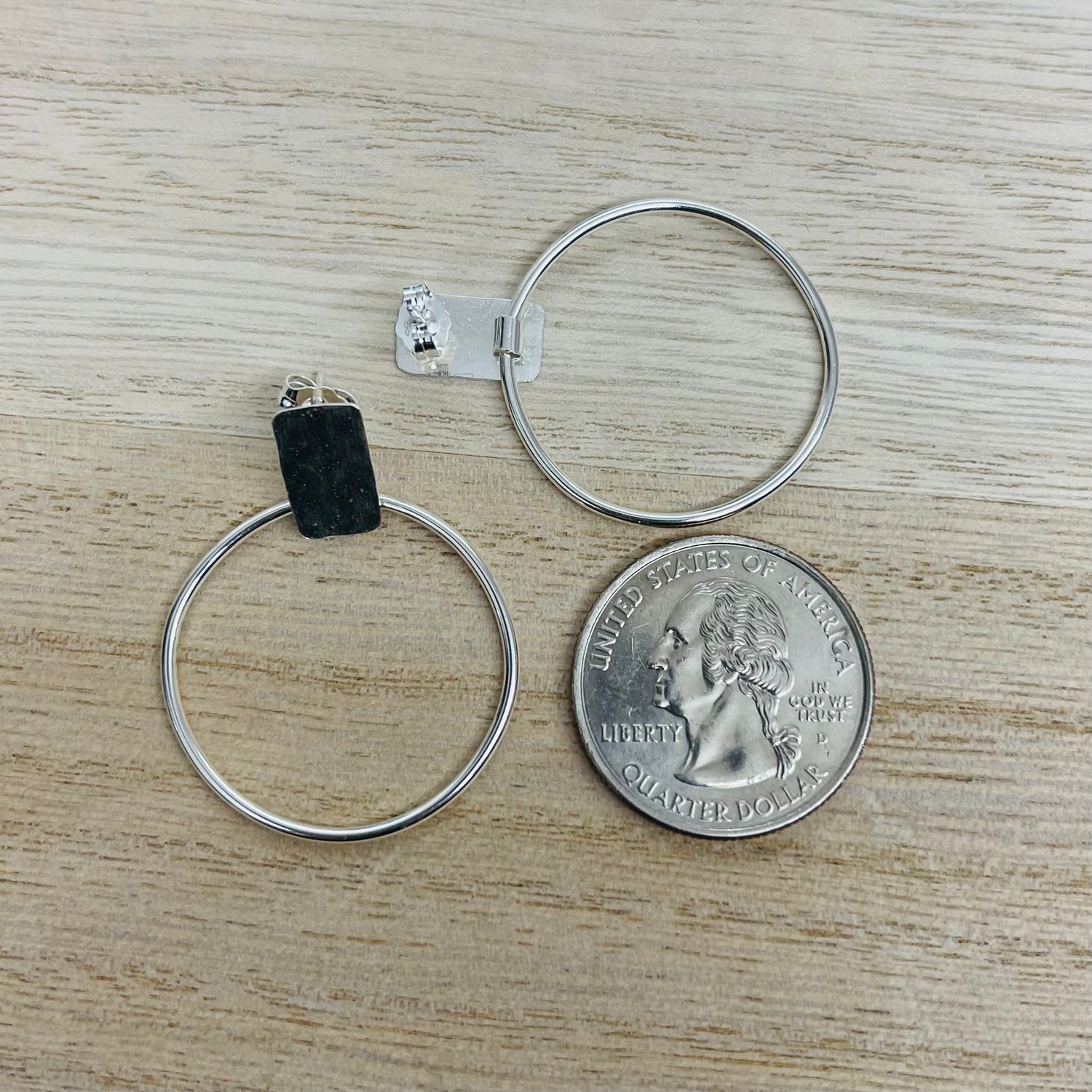 Hoops are 1 inch in diameter, and earrings measure 1.5 inches from top to bottom.